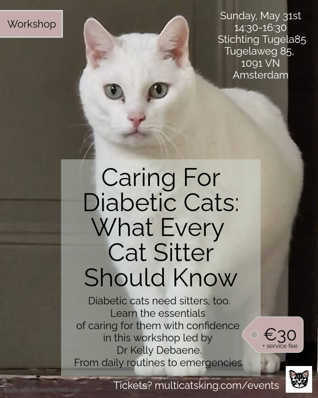 We’ve put this workshop together to help cat sitters feel more confident and prepared when caring for diabetic cats. The session is led by Dr Kelly Debaene from Mokum Mobile Vet.